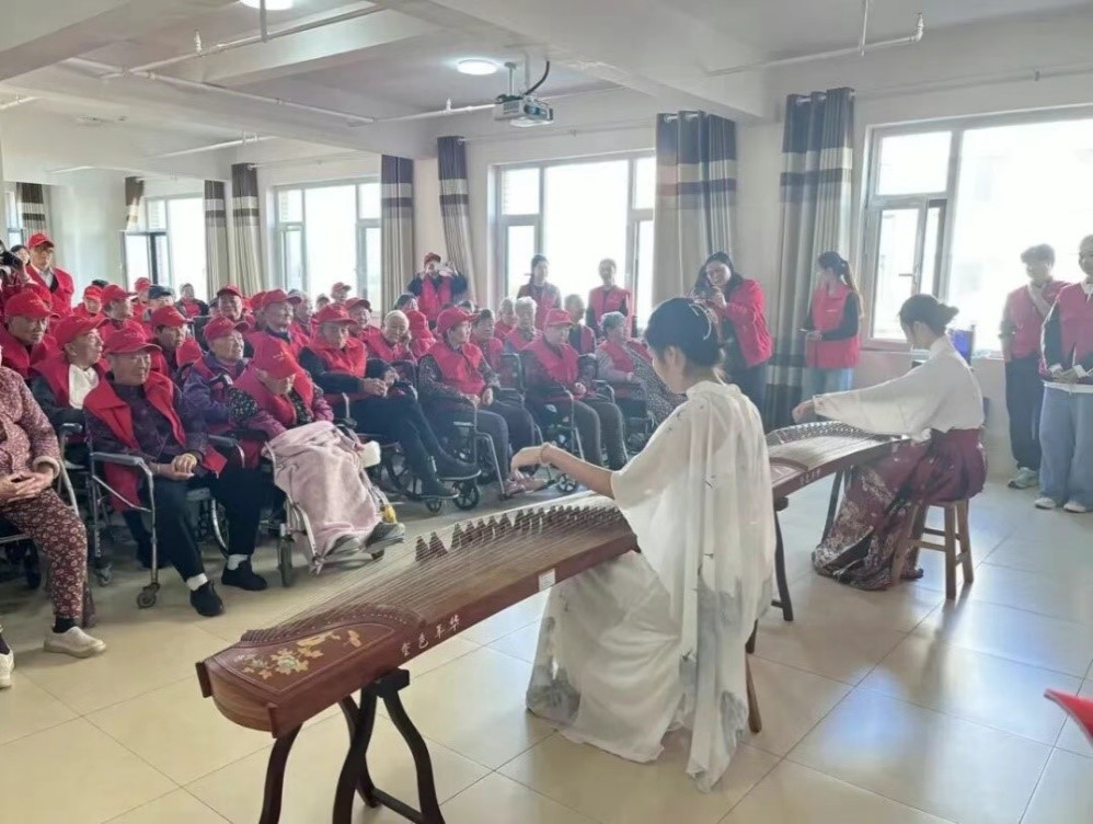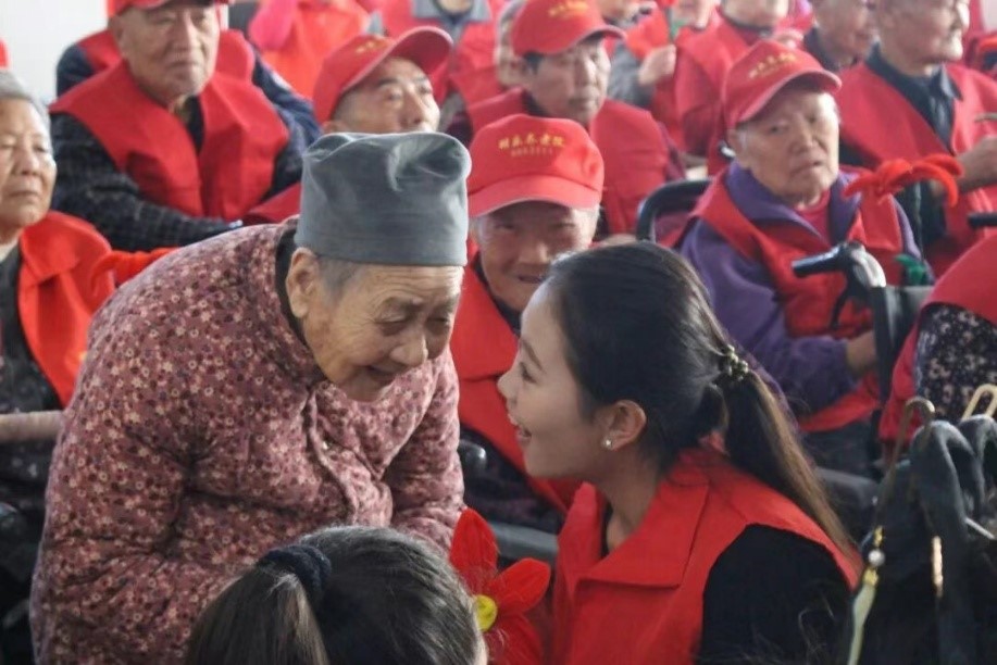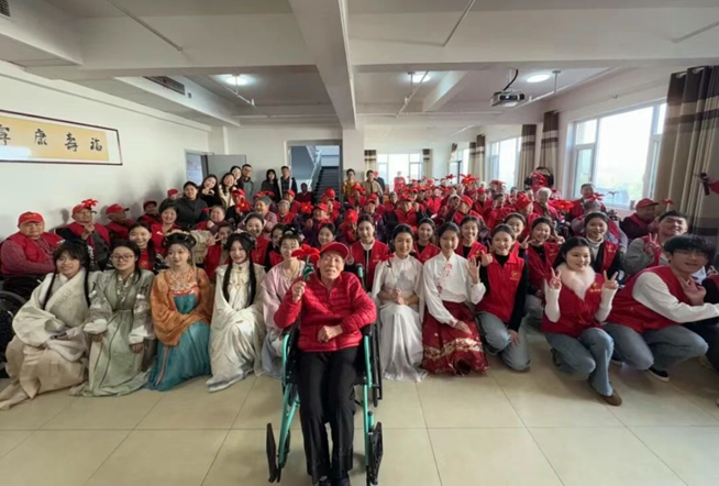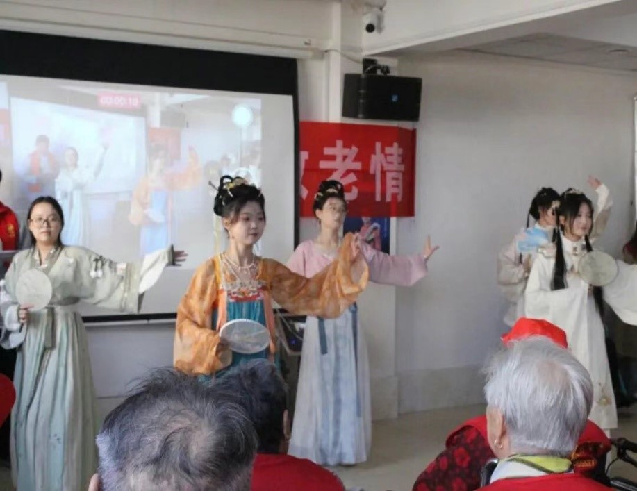 志愿者们为爷爷奶奶们表演了精心准备的舞蹈《石榴花开》《千里遥月》、独唱《桃花朵朵开》、相声《吹牛》、古筝合奏、歌曲《你笑起来真好看》、老年健身操以及大合唱《我爱你中国》等节目,用一场多元盛宴,为长辈送上最真挚的节日问候。