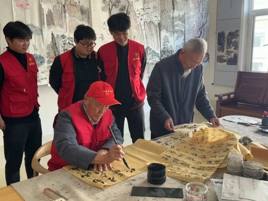 书画室里,敬老院的爷爷们执起狼毫,笔锋起落间,撇捺勾点晕开墨色。志愿者们眼神紧紧跟着笔尖游走,偶尔轻声交流着对笔墨的感受,一室的墨香与细碎的笑语交织,稳稳揉进了斜照进来的秋阳里。