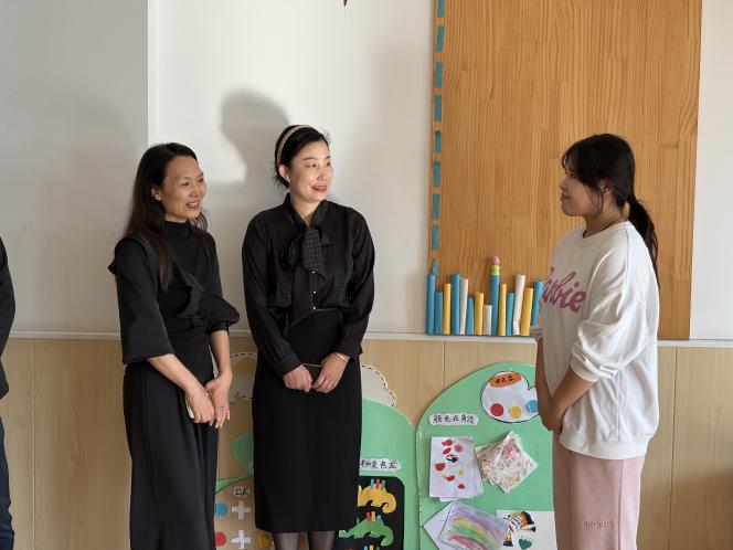 会后,在实地考察幼儿园的室内外环境及幼儿活动情况时与在幼儿园认识实习的学生进行了深入交流,了解学生认识实习情况。